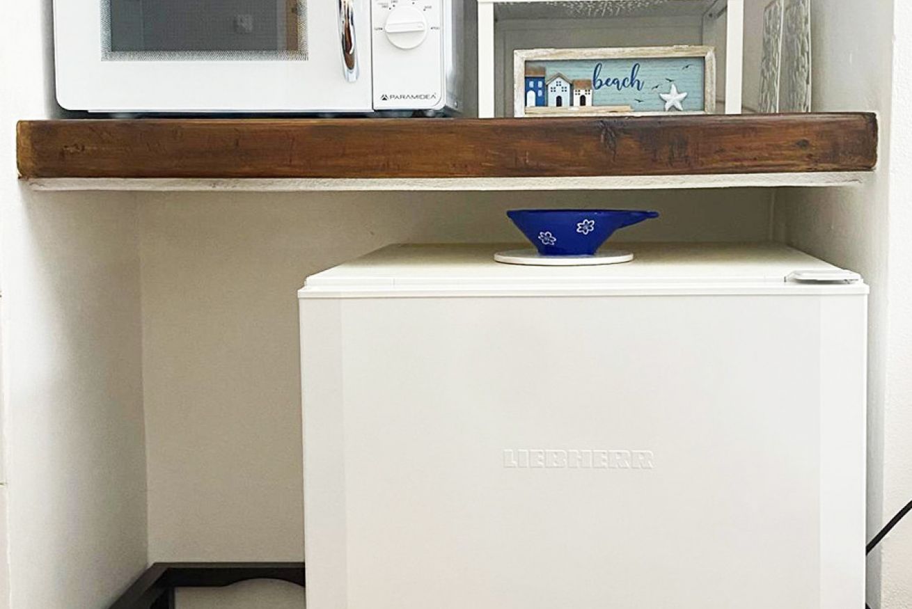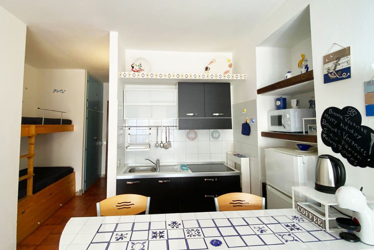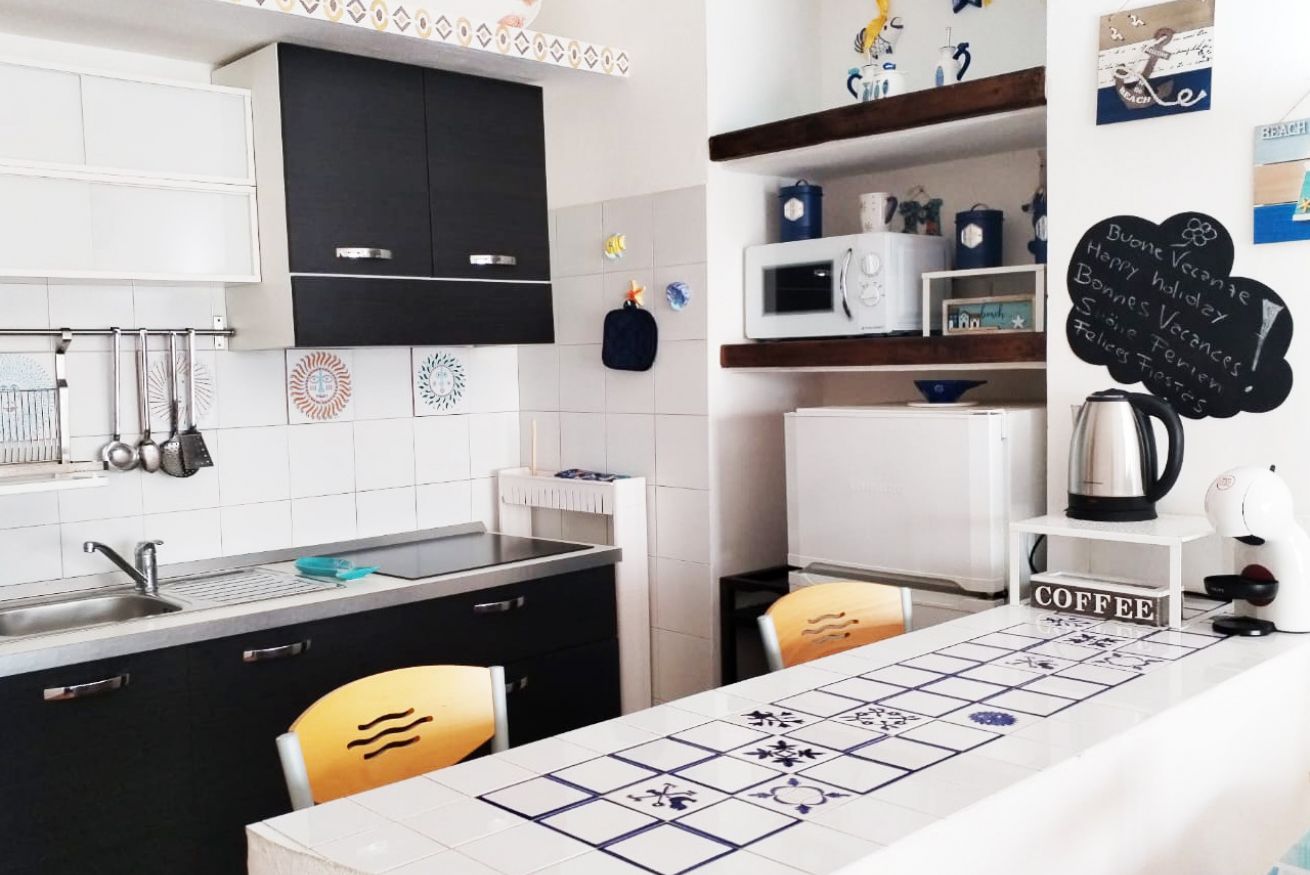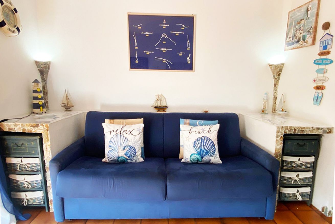 Il monolocale è composto da luminoso soggiorno con angolo cottura, divano letto matrimoniale, bagno con doccia e balcone vista mare con tavolo e sedie.
