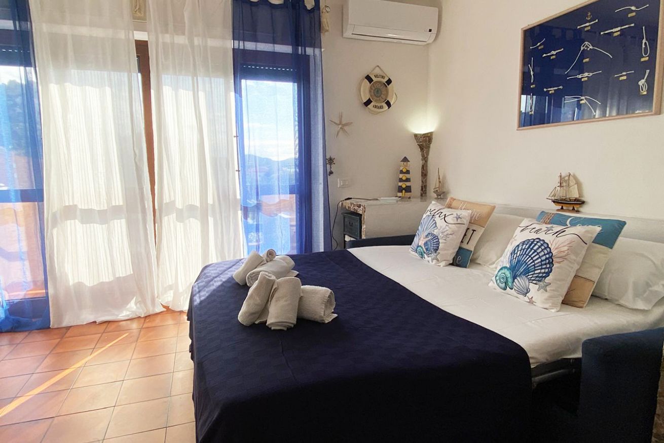 LaureLiving – Holiday Home propone monolocale ben accessoriato con balcone vista mare ubicato al primo piano con ascensore nel complesso residenziale di “Cala Maiore” in località Padule.